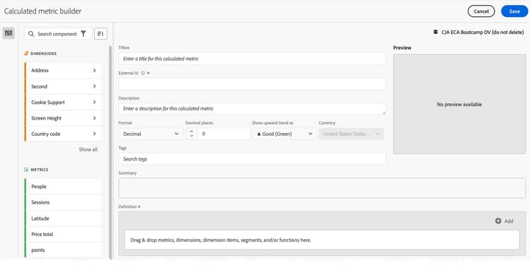 Dans CJA, les mesures peuvent être définies dans la vue de données ou dans Analysis Workspace en tant que mesures calculées. Cet article décrit et compare ces options et indique à quel moment utiliser chacune d’elles.