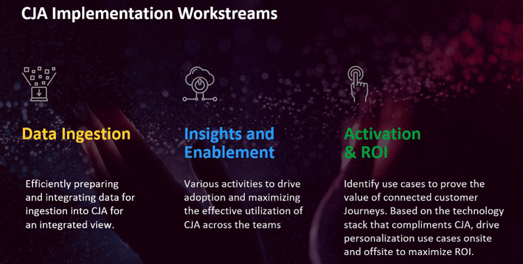 La mise en œuvre d’Adobe Customer Journey Analytics (CJA) implique trois étapes clés : ingestion, activation et adoption des données, ainsi qu’activation et retour sur investissement. En suivant ces étapes, les entreprises peuvent exploiter tout le potentiel de CJA et optimiser leur investissement.
