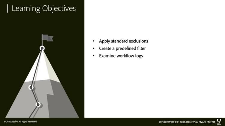 Découvrez comment affiner votre cible en appliquant une exclusion standard d’un workflow. Découvrez comment créer des filtres prédéfinis et résoudre les problèmes liés à votre workflow.