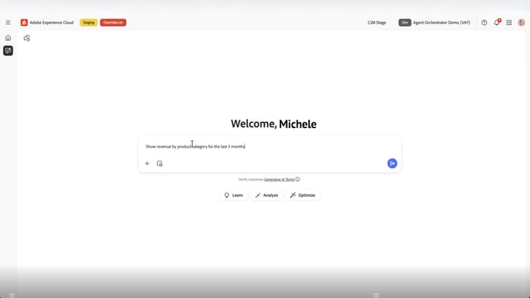 Bienvenue dans le futur de Adobe Experience Platform. Nous sommes ravis de vous montrer comment utiliser Data Insights Agent dans une interface utilisateur centralisée conçue pour rassembler la puissance des agents intelligents Adobe dans une expérience transparente.