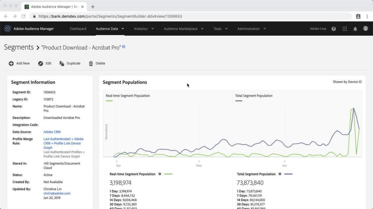 - Delete: utilizza questa opzione per rimuovere il segmento corrente dal tuo account Audience Manager.