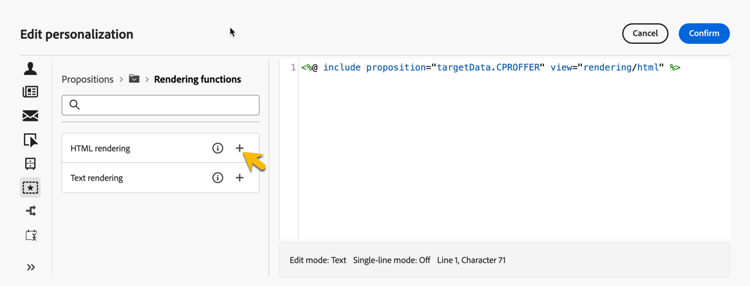 Accedi a Funzioni di rendering e scegli Rendering HTML o Rendering testo in base alle tue esigenze.