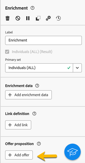 Nell'attività Enrichment, nella sezione Proposta di offerte, fare clic sul pulsante Aggiungi offerta