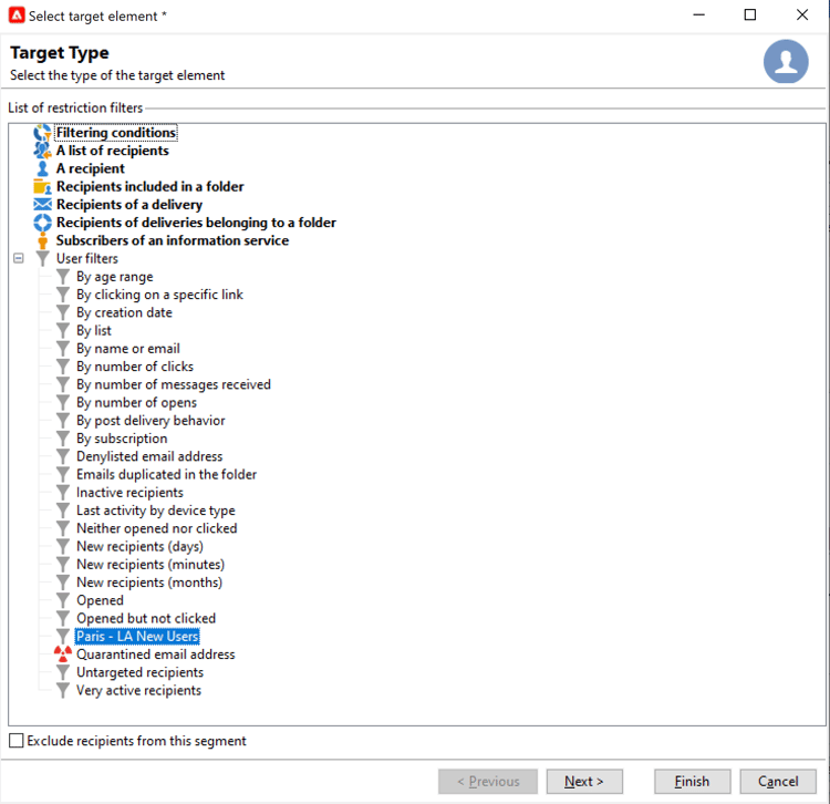 Questo filtro è disponibile anche dai filtri predefiniti dell’elenco dei destinatari.