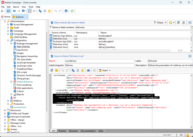 Da Campaign Explorer, seleziona Amministrazione > Configurazione > Schemi di dati.