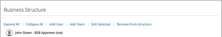 È possibile impostare un conto aziendale per riflettere la struttura dell'attività. Inizialmente, la struttura aziendale include solo l’amministratore della società, ma può essere espansa per includere i team di utenti. Gli utenti possono essere associati a team o organizzati all’interno di una gerarchia di divisioni e suddivisioni all’interno dell’azienda. La struttura è progettata per supportare l'utilizzo di regole di approvazione per ordini fornitore (OA) associati all'account società.