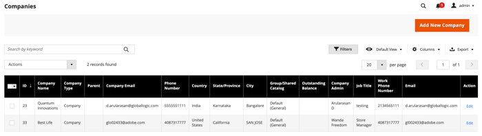 Avvia le attività di gestione società dalla visualizzazione Companies. Dall'amministratore, passa a Customers > Companies.