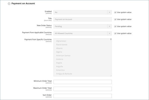 All Allowed Countries- I clienti di tutti i paesi specificati nella configurazione del tuo negozio possono utilizzare questo metodo di pagamento.Specific Countries- Dopo aver scelto questa opzione, viene visualizzato l'elenco Payment from Specific Countries. Per selezionare più paesi, tenere premuto il tasto Ctrl (PC) o il tasto Comando (Mac) e fare clic su ciascuna opzione.