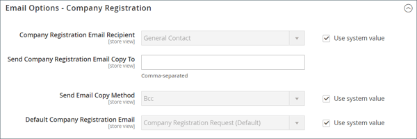 Se è stato preparato un modello di posta elettronica da utilizzare al posto di quello predefinito, impostare Default Company Registration Email sul nome del modello. Per impostazione predefinita, viene utilizzato il modello