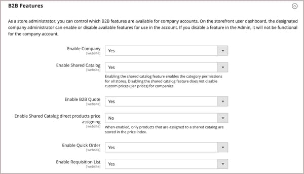 Yes.Quando abiliti il supporto aziendale, il catalogo condiviso, il preventivo B2B, i metodi di pagamento B2B e i metodi di spedizione B2B vengono abilitati automaticamente.