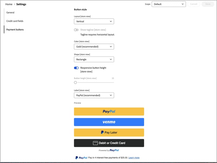 Show PayPal buttons on product detail page