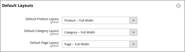 Page -- Full Width- (Consigliato) Utilizza il layout Pagina - Larghezza intera per le pagine CMS.Category - Full Width- Utilizza il layout Categoria - Larghezza intera per le pagine CMS.Product - Full Width- Utilizza il layout Prodotto - Larghezza intera per le pagine CMS.