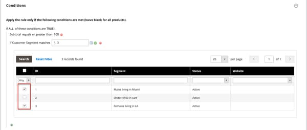 Nell’elenco, seleziona la casella di controllo di ciascun segmento di cui desideri eseguire il targeting con la condizione.