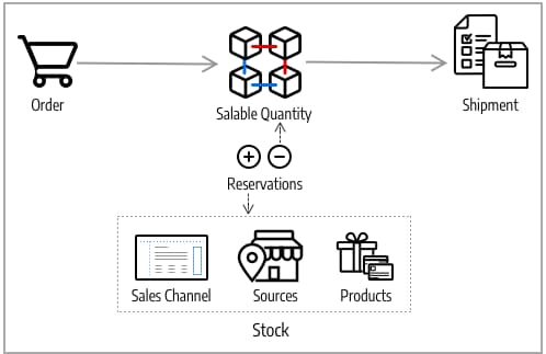 Anziché dedurre o aggiungere immediatamente le quantità di magazzino dei prodotti, gli impegni mantengono gli importi di magazzino fino alla spedizione o all'annullamento degli ordini. Le prenotazioni funzionano interamente nel backend per aggiornare automaticamente la quantità vendibile a livello di scorte.