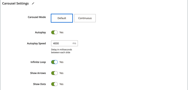 No), il cliente deve fare clic sulla navigazione della diapositiva (punti o frecce) per visualizzare ogni diapositiva in sequenza.Se si abilita questa funzione, immettere Autoplay Speed per specificare il ritardo in millisecondi tra ciascuna diapositiva. Il valore predefinito è
