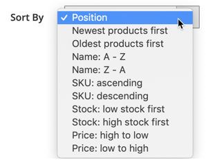 Per Sort By, scegliere l'ordinamento per i prodotti nell'elenco: