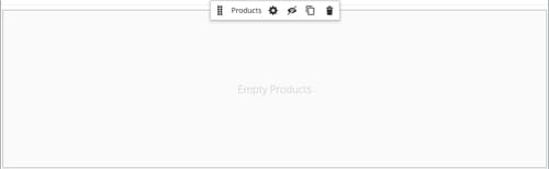 Passa il puntatore del mouse sul contenitore Products vuoto per visualizzare la casella degli strumenti e fai clic sull'icona Settings (