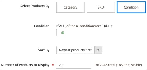 Condition - Scegliere questa opzione per visualizzare i prodotti in base a una o più condizioni definite.