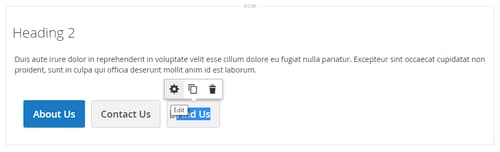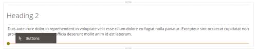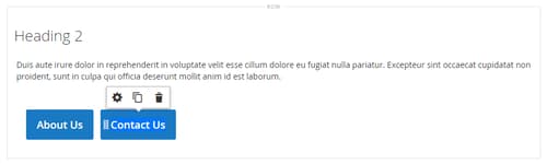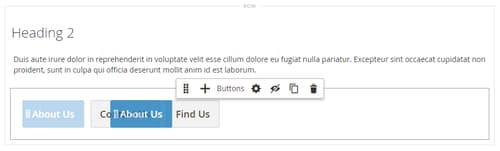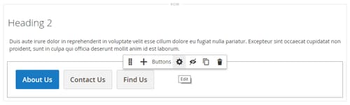 Quando si utilizza il tipo di contenuto Pulsanti, è possibile aggiungere e modificare singoli pulsanti e il relativo contenitore che contiene uno o più pulsanti. Ciascuno di essi dispone di una propria casella degli strumenti che è possibile utilizzare per progettare i pulsanti nella fase Page Builder.
