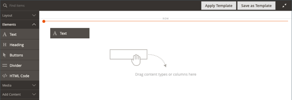 Nel pannello Page Builder, espandi Elements e trascina un segnaposto Text in una riga, colonna o set di schede sull'area di visualizzazione.