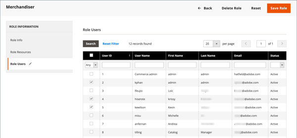 Selezionare la casella di controllo degli utenti da assegnare al ruolo.