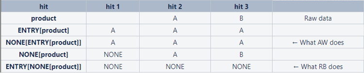 Si tratta di un comportamento previsto in base al conteggio di Entrate e Uscite in queste piattaforme in Adobe Analytics. La differenza di calcolo si verifica quando NONE viene aggiunto alla dimensione per la quale vengono segnalati Entrate e Uscite. Nel caso di Report Builder, NONE viene aggiunto prima di qualsiasi altra cosa nel calcolo di Entrate e Uscite, mentre in Analysis Workspace, NONE viene aggiunto dopo il calcolo di Entrate e Uscite. Questo porta a un'enorme differenza nel conteggio.