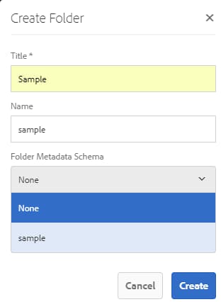 Adobe Experience Manager Assets consente di creare schemi di metadati per le cartelle di risorse, che definiscono il layout e i metadati visualizzati nelle pagine delle proprietà delle cartelle.