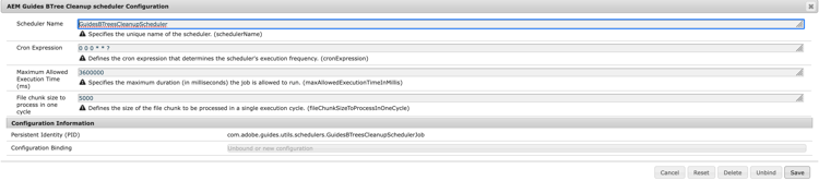 Cerca e seleziona il bundle com.adobe.guides.utils.schedulers.GuidesBTreesCleanupSchedulerJob.
