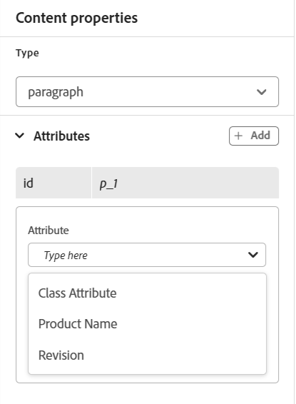 Con questa impostazione, quando si tenta di aggiungere un attributo a un elemento, viene visualizzato solo l’elenco degli attributi configurati nell’elenco.