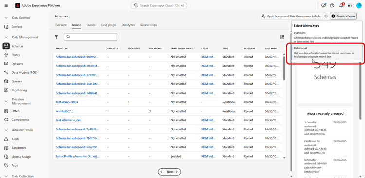 ➡️ Ulteriori informazioni sugli schemi relazionali nella documentazione di Adobe Experience Platform