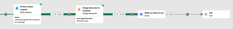 Questo caso d’uso mostra l’invio a più livelli: genera un’e-mail distinta per ogni voce della lista dei desideri utilizzando l’indirizzo e-mail memorizzato con il singolo elemento anziché con il record del destinatario. Questo consente ai clienti di ricevere notifiche separate per ogni prodotto nella lista dei desideri anche se utilizzano indirizzi e-mail diversi per elementi diversi.