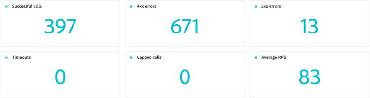 Errori 4xx/5xx: numero di chiamate non riuscite a causa di errori lato client (4xx) o lato server (5xx), evidenziando problemi di configurazione o errori endpoint.