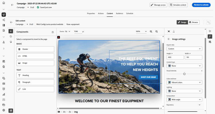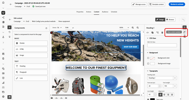 Dopo aver creato e personalizzato le pagine web, utilizza l’Assistente AI in Journey Optimizer basato sull’intelligenza artificiale generativa per portare i contenuti al livello successivo.