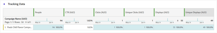La tabella Dati di tracciamento offre un'istantanea dettagliata dell'attività di profilo associata alle pagine Web, fornendo informazioni essenziali sull'efficacia del coinvolgimento e delle pagine Web.