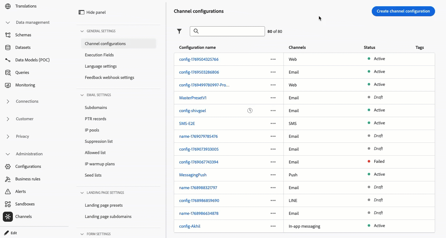 Questa funzionalità è disponibile solo per i canali e-mail e SMS, per le organizzazioni che hanno acquistato il componente aggiuntivo per l’esportazione dei messaggi. Per ulteriori informazioni, contatta il tuo rappresentante Adobe.