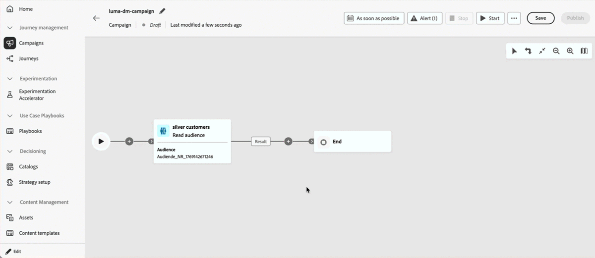 Pulsante di riavvio: le campagne orchestrate ora includono un pulsante di riavvio per riavviare rapidamente le esecuzioni, se necessario, prima di pubblicare la campagna. Ulteriori informazioni