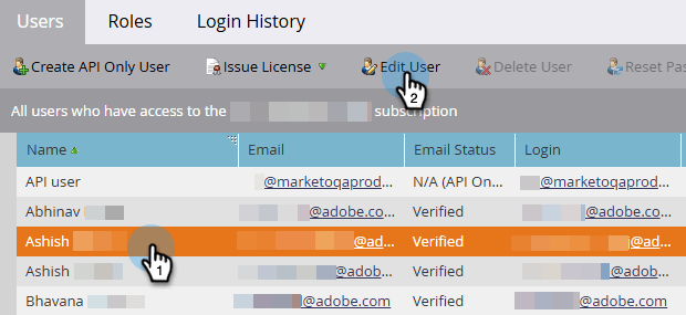 Selezionare l'utente desiderato e fare clic su Edit User.