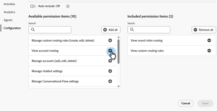 Nella scheda Instradamento account, fare clic su + Aggiungi account.