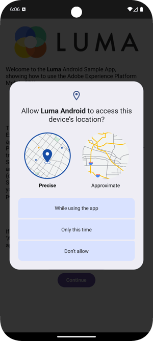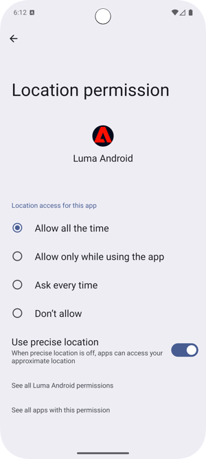 In Consentire a Luma Android di accedere alla posizione di questo dispositivo?…