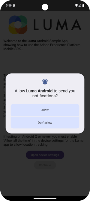 Nella finestra di dialogo Consenti a Luma Android di inviarti notifiche, seleziona Consenti.