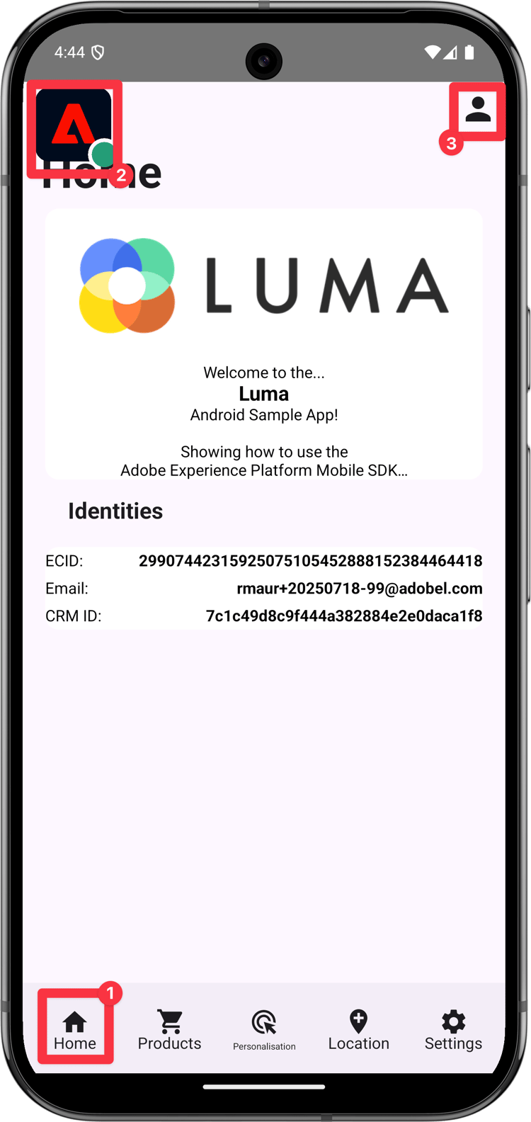 > app > kotlin+java > com.adobe.luma.tutorial.androi > views > HomeView.kt nel Navigatore progetti di Android Studio e trova il modificatore.onAppear. Aggiungi il seguente codice:code language-kotlin // Get attributes UserProfile.getUserAttributes(listOf("isPaidUser")) { attributes -> showBadgeForUser = attributes?.get("isPaidUser") == "yes" }Questo codice: