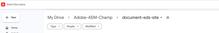 4. Carica il modello di sito per l’authoring WYSIWYG con Edge Delivery Services che hai scaricato da GitHub. Il modello deve essere caricato una sola volta. Una volta caricato, può essere riutilizzato per creare ulteriori siti.