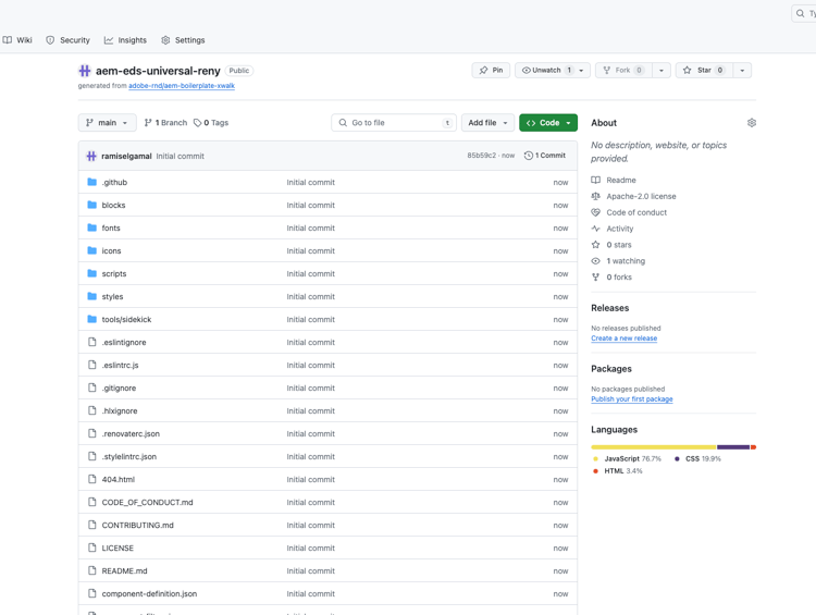 1. Scarica il modello di sito più recente per l’authoring con Edge Delivery Services da GitHub.