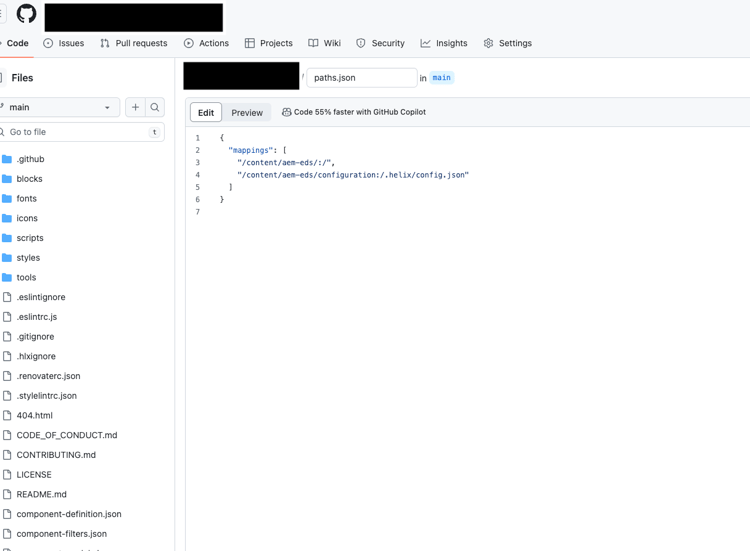3. Torna alla directory principale dell’archivio e fai clic su paths.json e quindi su Modifica questo file.