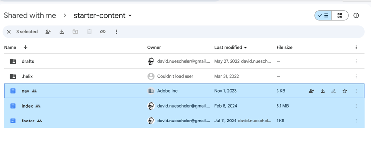 4. Assicurati di condividere la cartella con helix@adobe.com.