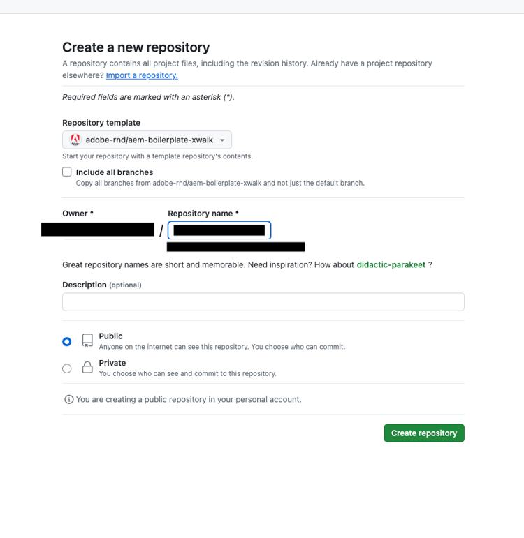 - URL GitHub: utilizza l’URL del progetto GitHub creato nel passaggio precedente.