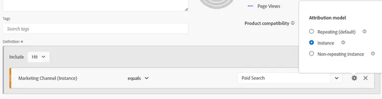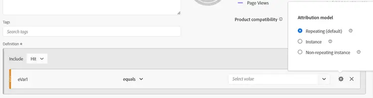 La modellazione dell’attribuzione in una definizione di segmento si riferisce principalmente a dimensioni che hanno una scadenza non relativa agli hit, pertanto è adatta alle variabili prop (che sono sempre a livello di hit). Piuttosto, queste impostazioni sono progettate per essere usate con eVar, canali di marketing Così via.