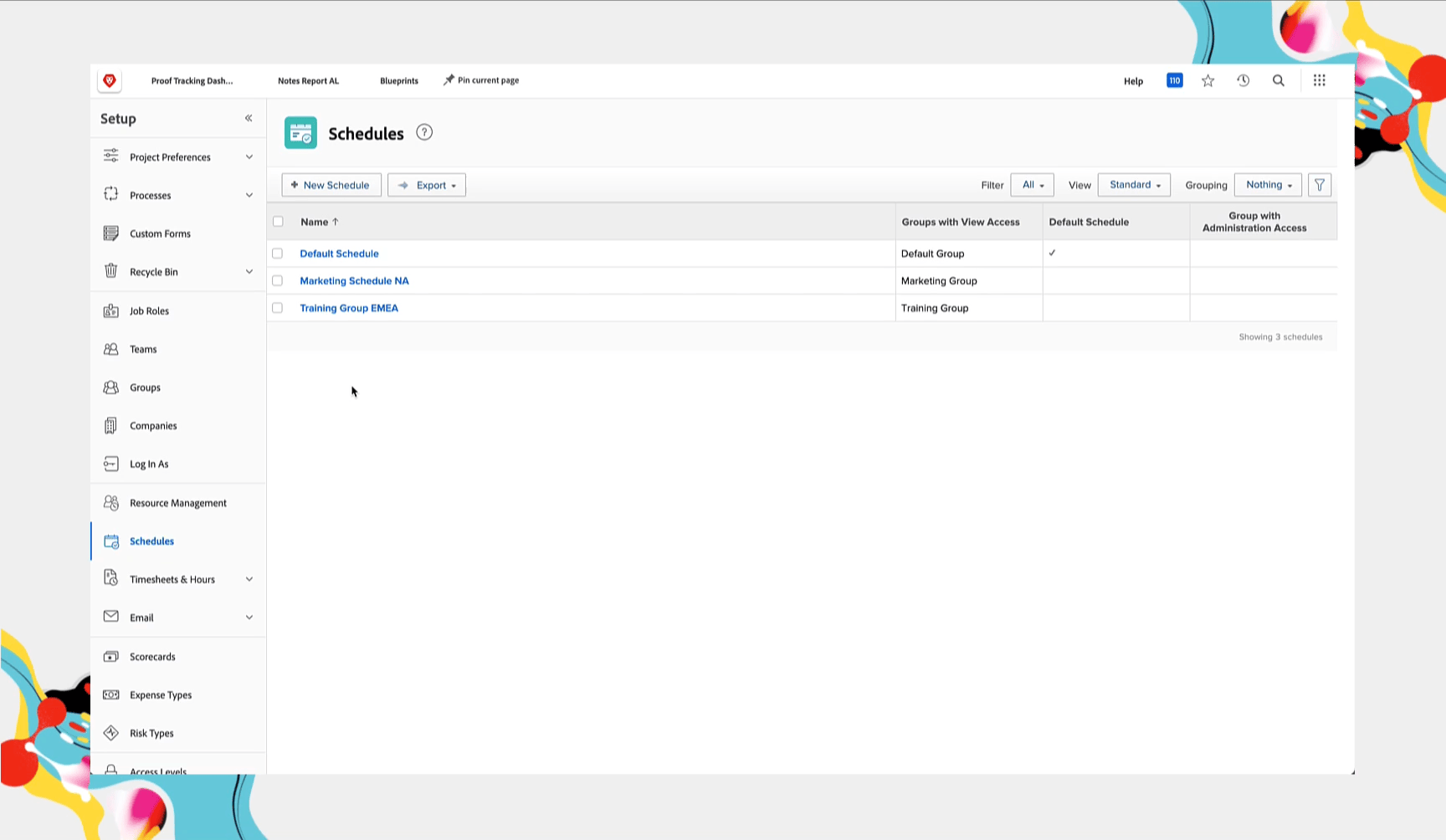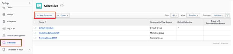 各スケジュールの 表示アクセス権を持つグループ 設定は、Workfront でそのスケジュールを使用できるグループを決定します。