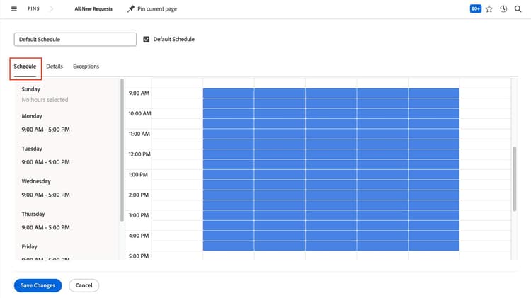 変更を保存をクリックします。このスケジュールが、Workfrontインスタンスのデフォルトになります。