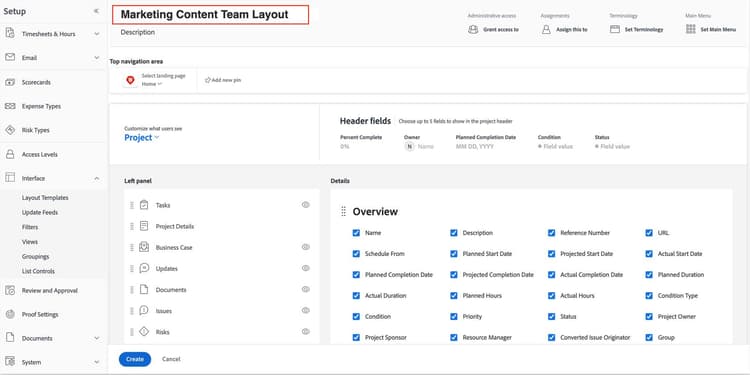 レイアウトテンプレートは、ユーザーが Adobe Workfront で表示およびアクセスできる機能と領域を簡素化し、重要なことに集中できるようにします。